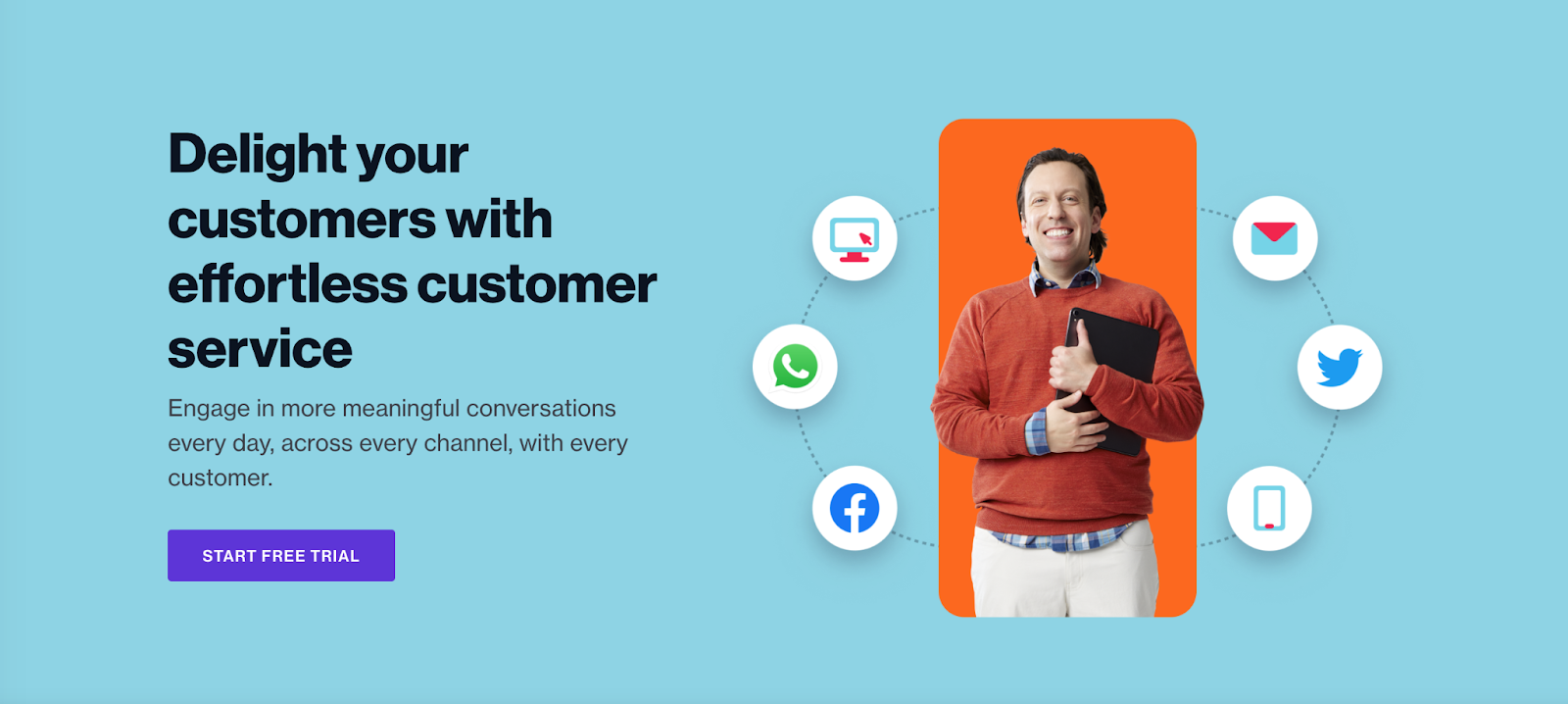 Multi-channel solution that combines email, SMS Shared Inbox, WhatsApp automation, chatbots and live chat