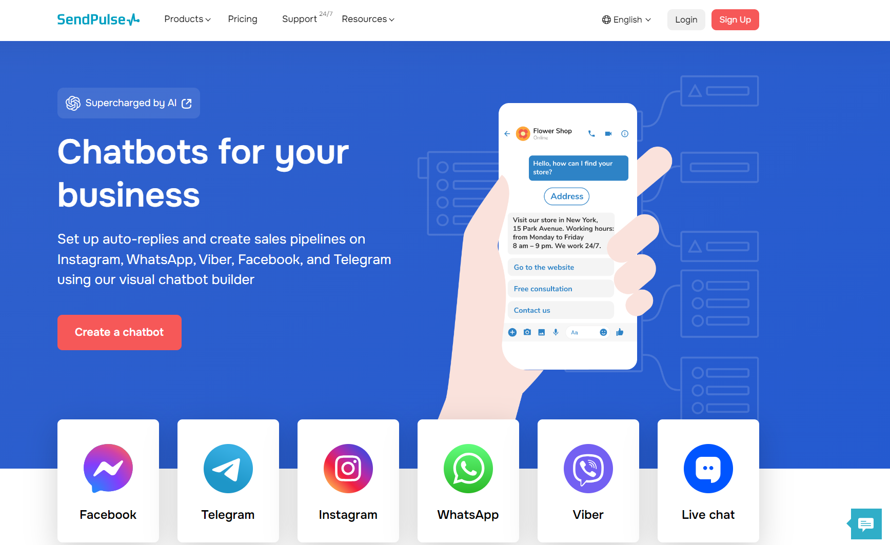 SendPulse offers ChatGPT powered AI chatbots for top messenger platforms and websites, enabling intelligent automated customer interactions 24/7. These chatbots efficiently handle inquiries, reduce response time, and enhance overall customer satisfaction, all without human intervention.