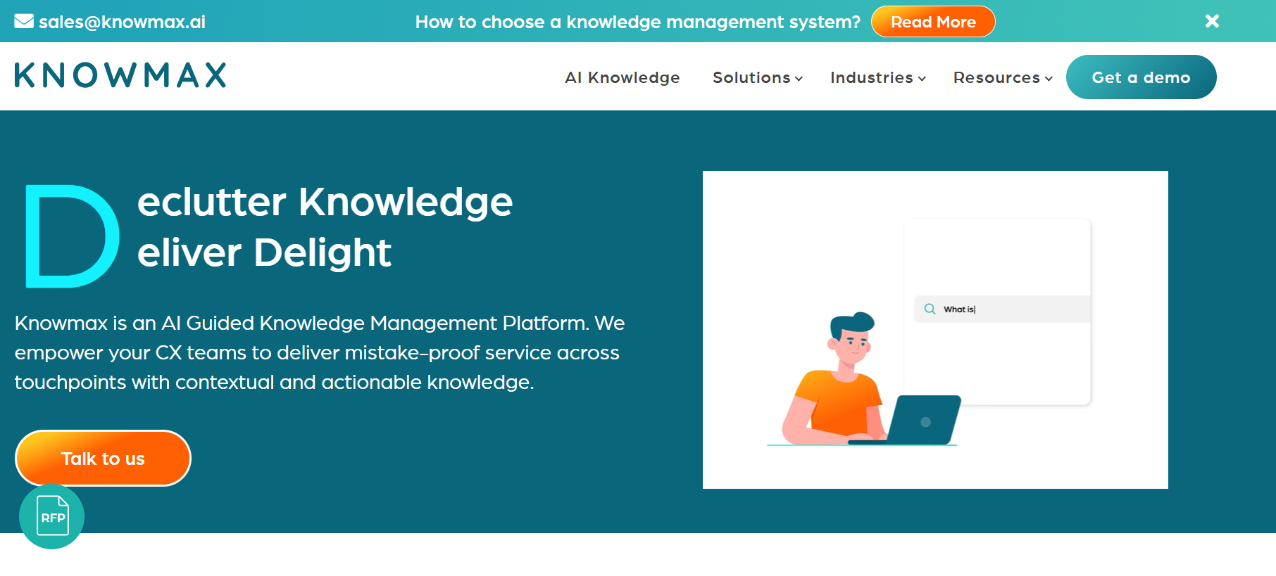 Knowmax is an AI-powered Knowledge Management System designed to help customer service teams deliver accurate, mistake-proof support across all channels. With advanced AI features, it simplifies knowledge access, enhances agent efficiency, and ensures seamless customer experiences.