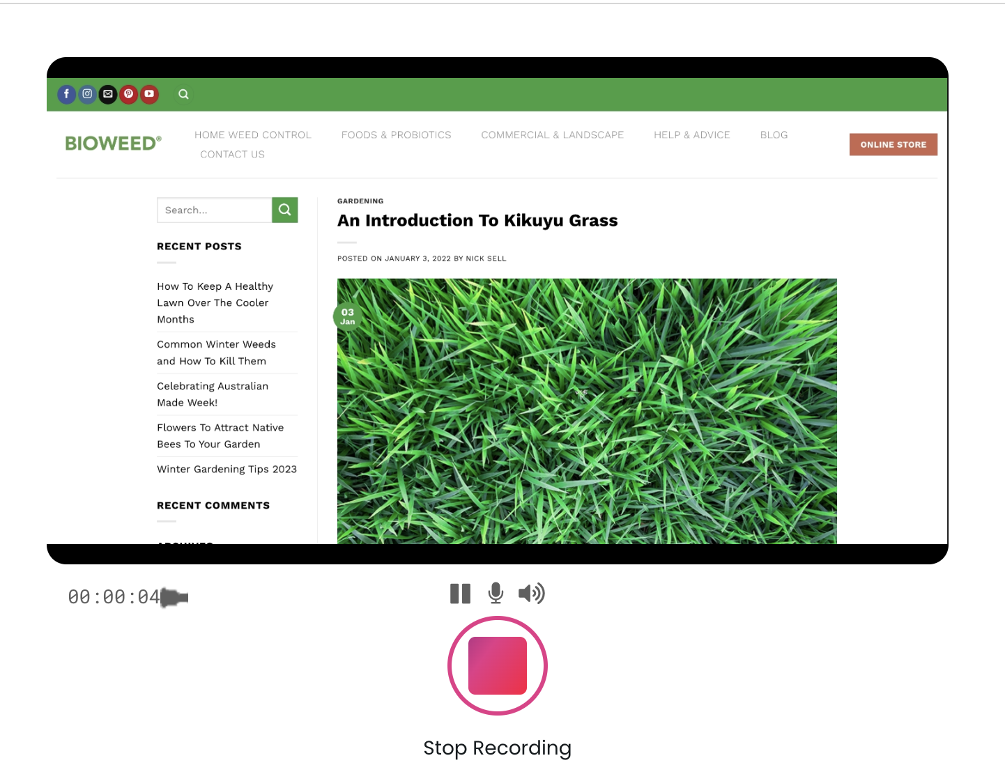- Se ‘Iniciar a gravação automaticamente’ não foi selecionado, clique em ‘Iniciar Gravação’.