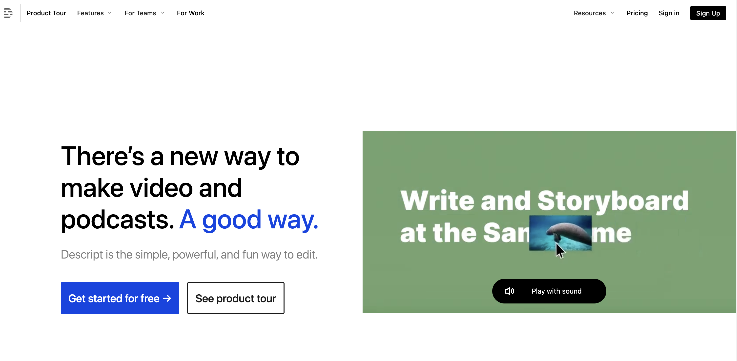 - Short Summary: Descript markets itself as an “all-in-one audio & video editor.” It features powerful transcription, editing-by-text, screen recording, overdubbing (AI celebrity voice cloning), and more. For creators focused on audio production, explore our comprehensive guide to the top 10 AI tools for audio in 2024, which covers specialized AI solutions for podcasts, music, and voice processing.