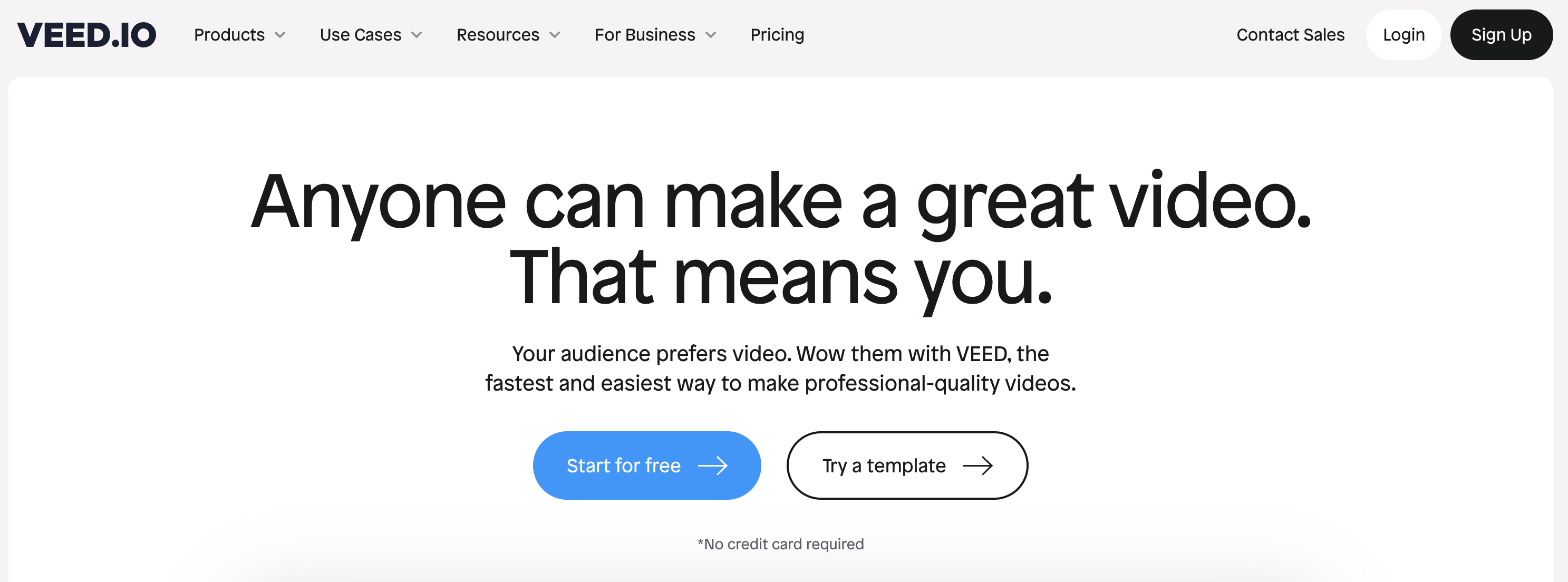 - Short Summary: VEED.IO is a user-friendly online video editor with integrated AI features. It offers automated subtitling, transcription, audio cleanup, and basic editing tools.