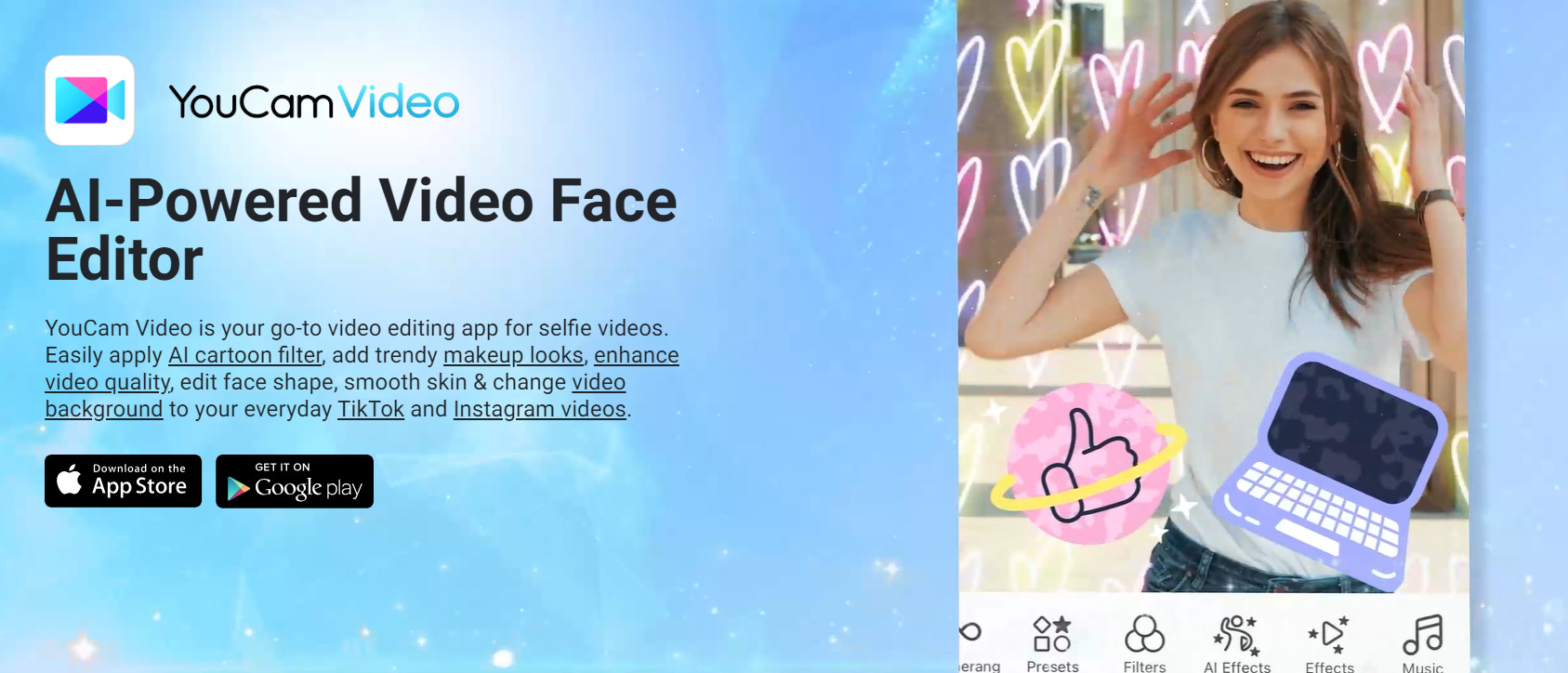 - Short Summary: YouCam Video is an AI-powered video editing app designed to enhance and transform videos effortlessly. With features like AI video enhancement, image-to-video, text-to-video, and face swap, it provides users with powerful tools to create professional-quality content without advanced editing skills.