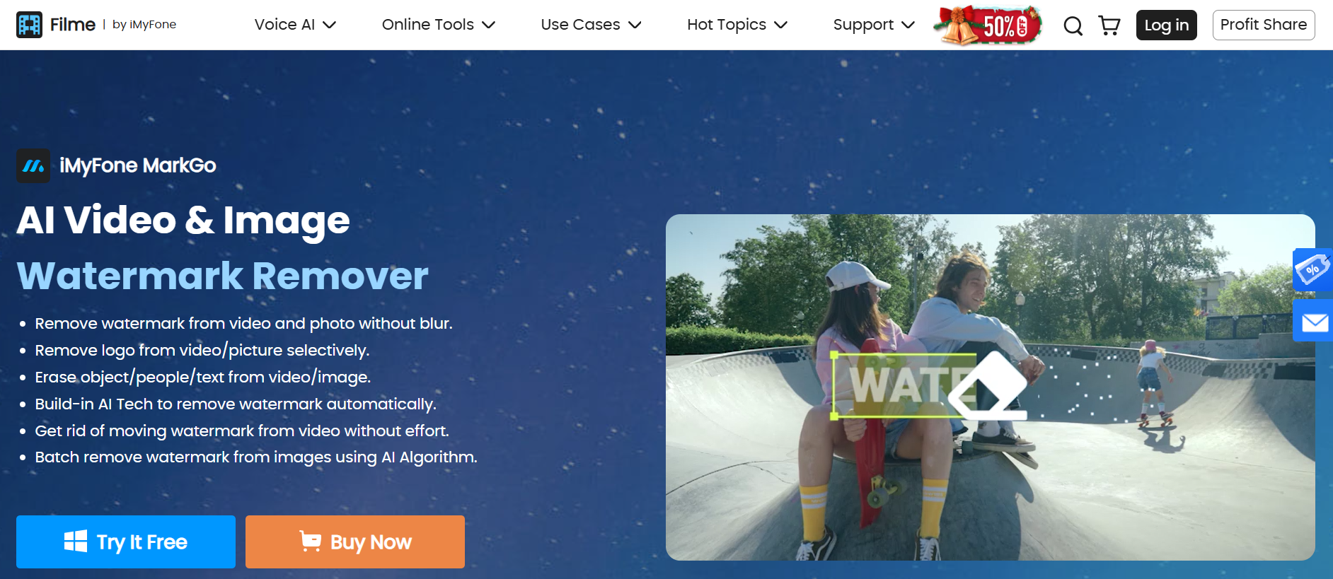 iMyFone MarkGo est un outil spécialisé basé sur l’IA, conçu pour la suppression des filigranes. Grâce à ses algorithmes innovants et précis, iMyFone MarkGo rationalise le processus de suppression des filigranes des images et des vidéos, ce qui en fait un choix privilégié pour de nombreux utilisateurs à la recherche de résultats professionnels.