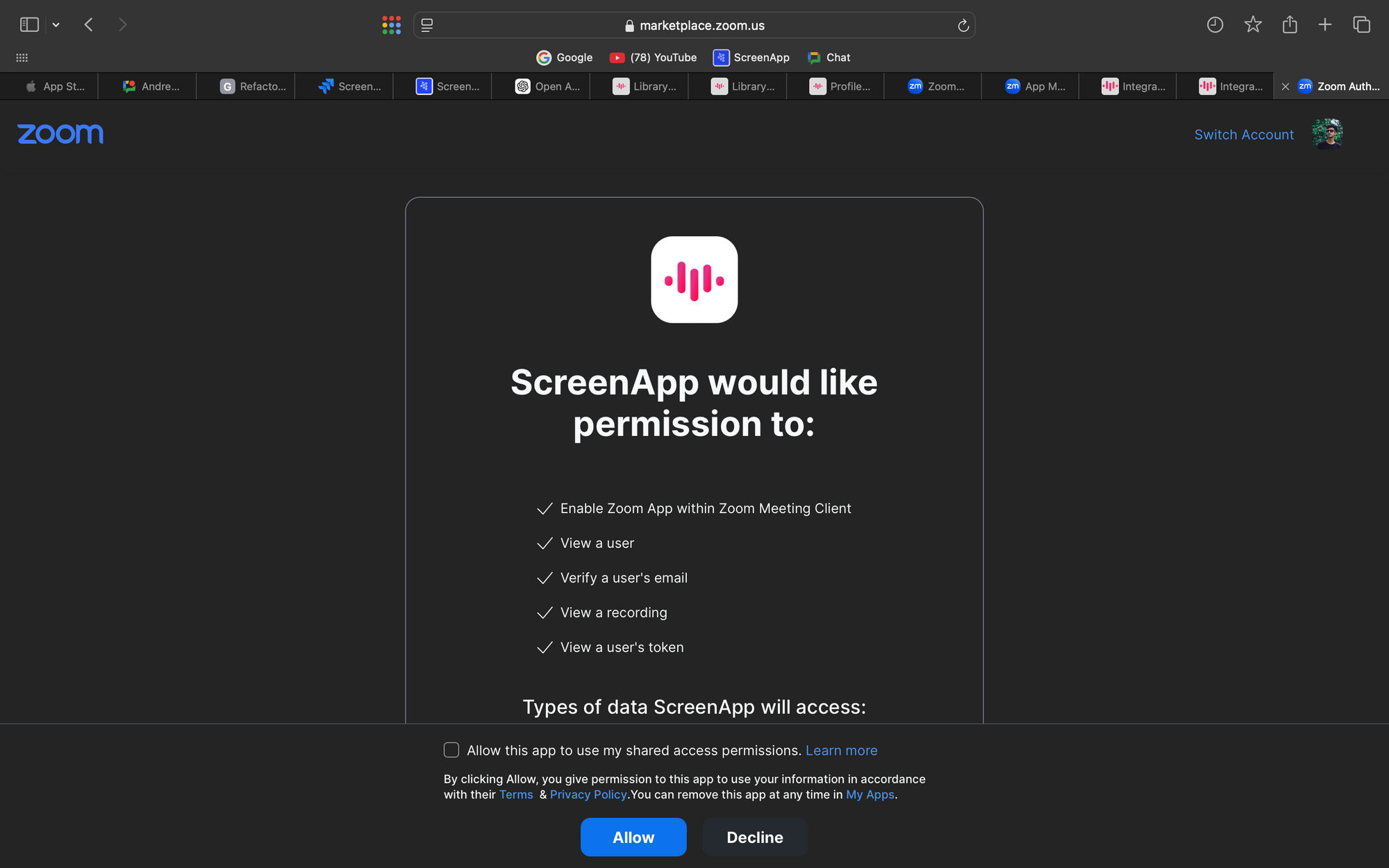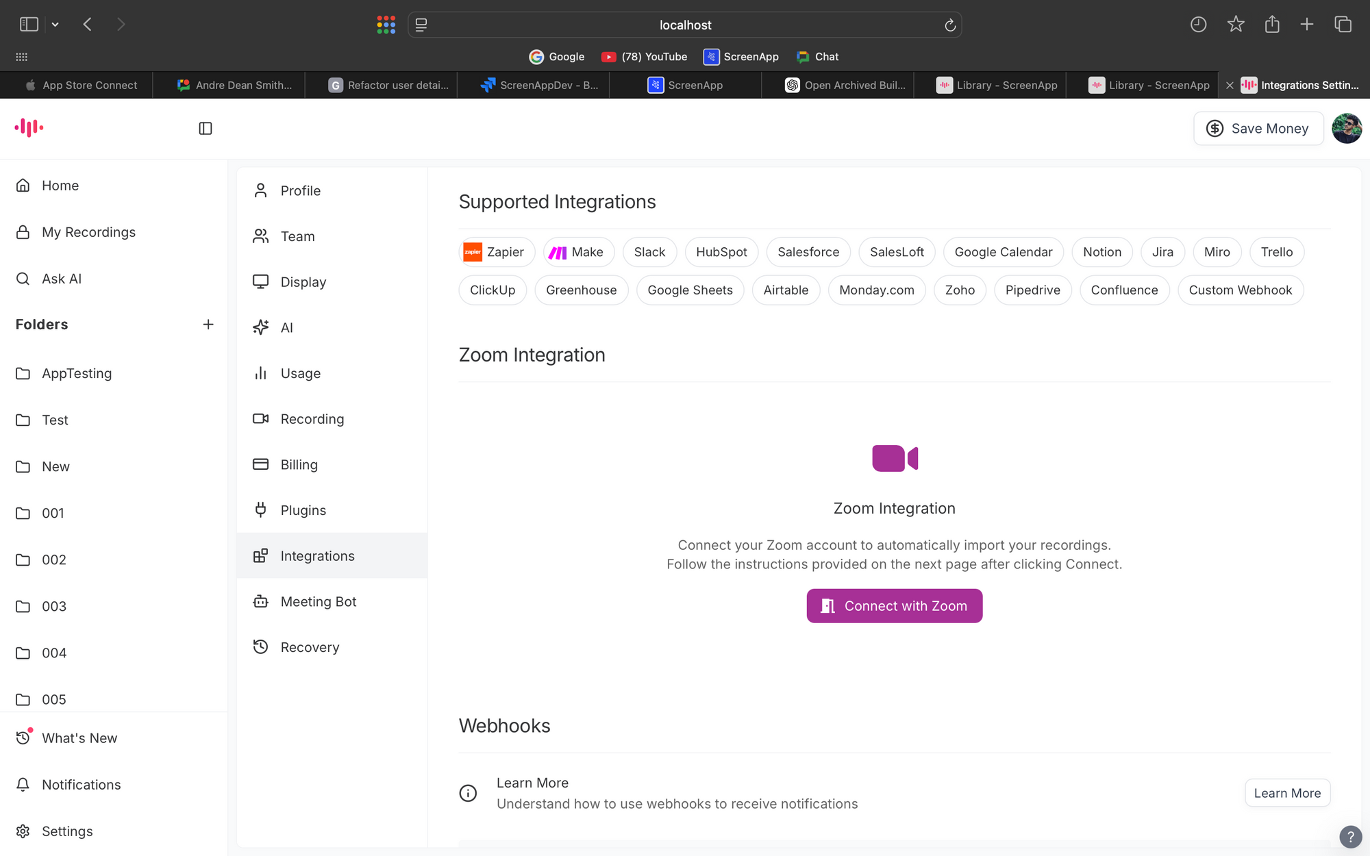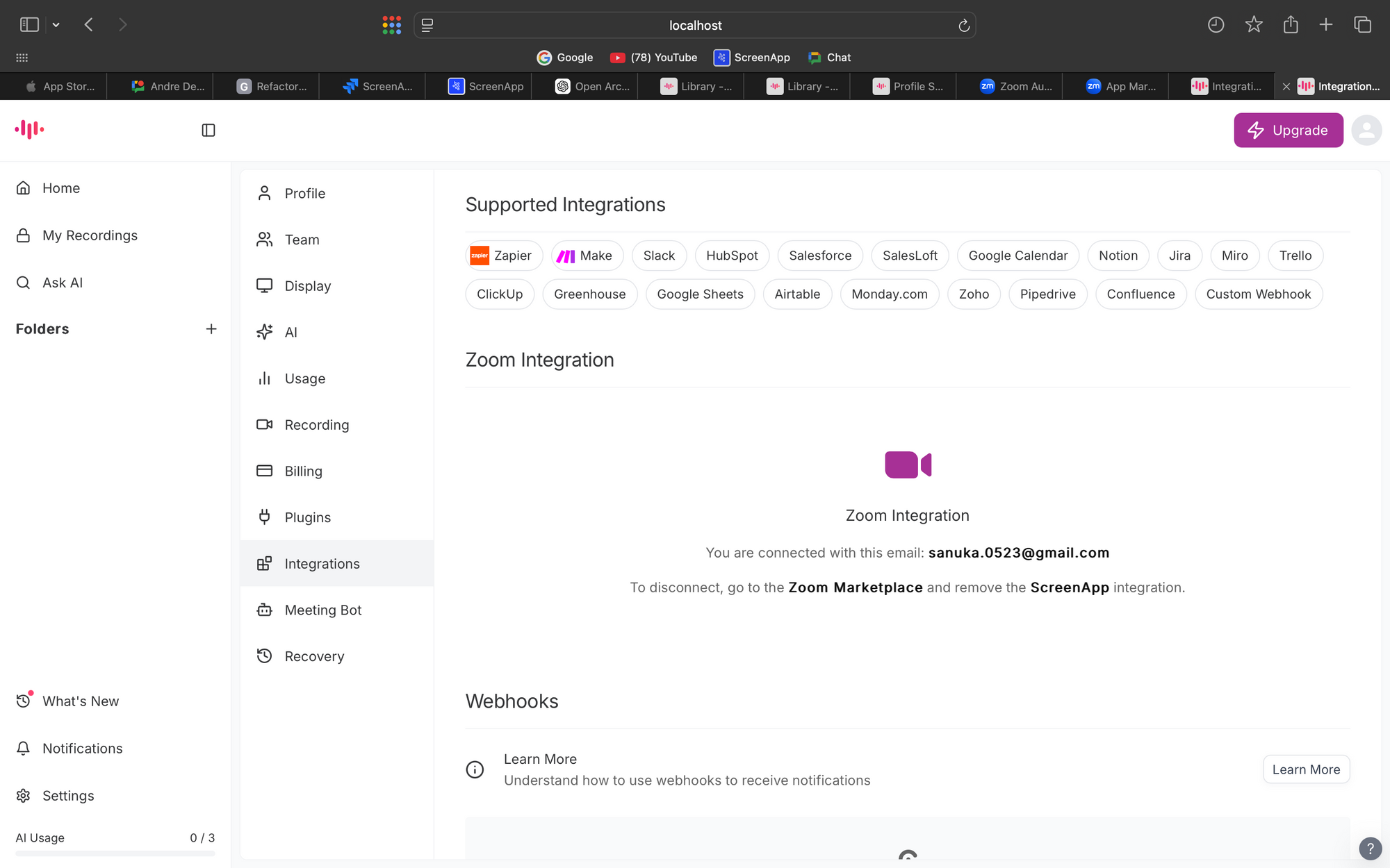 - Uma vez instalado, todas as gravações de nuvem do Zoom serão automaticamente enviadas para sua conta ScreenApp.
